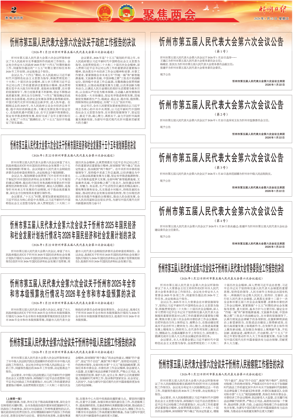 - 忻州市第五届人民代表大会第六次会议公告