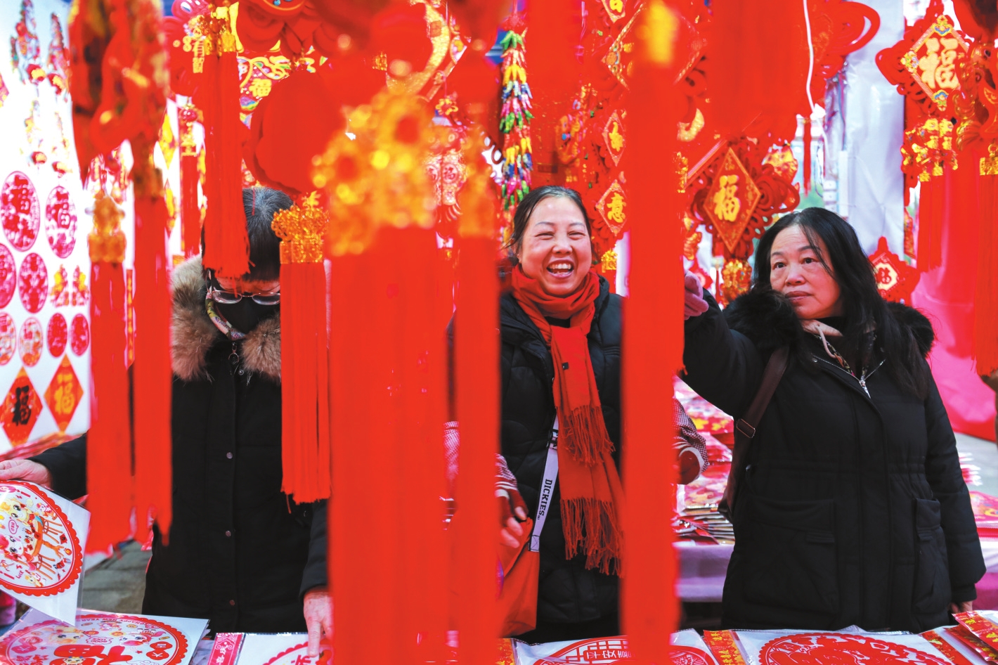 1月22日,市民在贵州省都匀市文峰广场年画市场挑选春节饰品。 新华社发(肖伟摄)