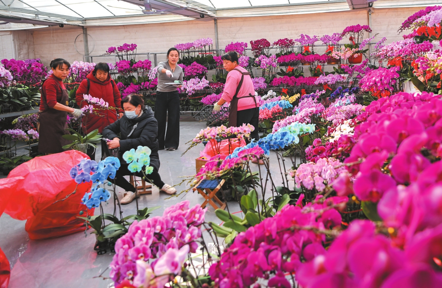 1月22日,市民在山东省青州市花卉苗木交易中心选购鲜花。 新华社发(王继林摄)