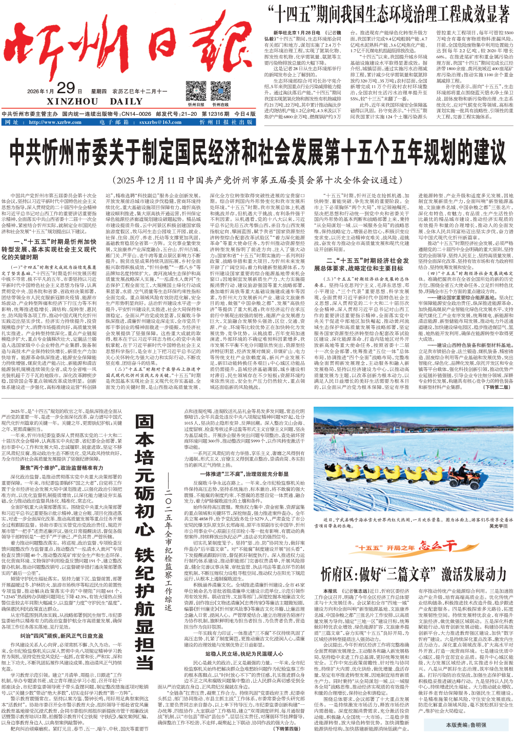 中共忻州市委关于制定国民经济和社会发展第十五个五年规划的建议