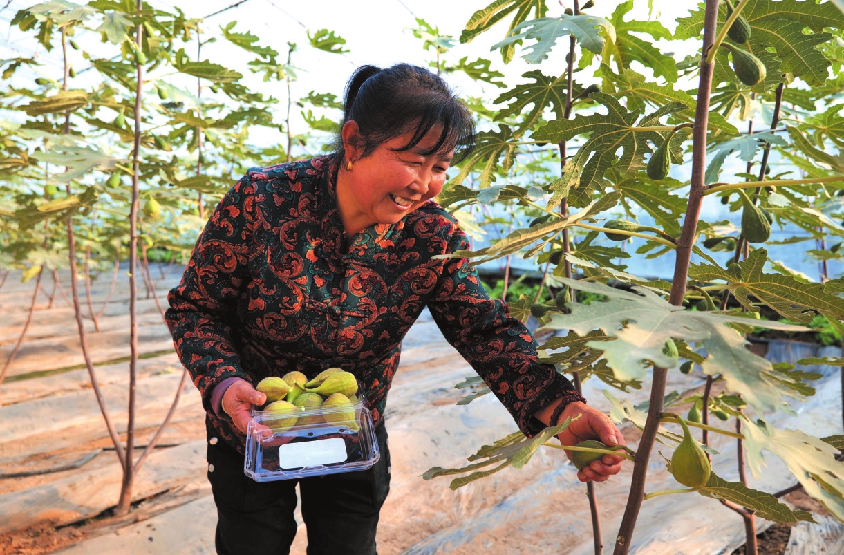 种植户采摘成熟的无花果