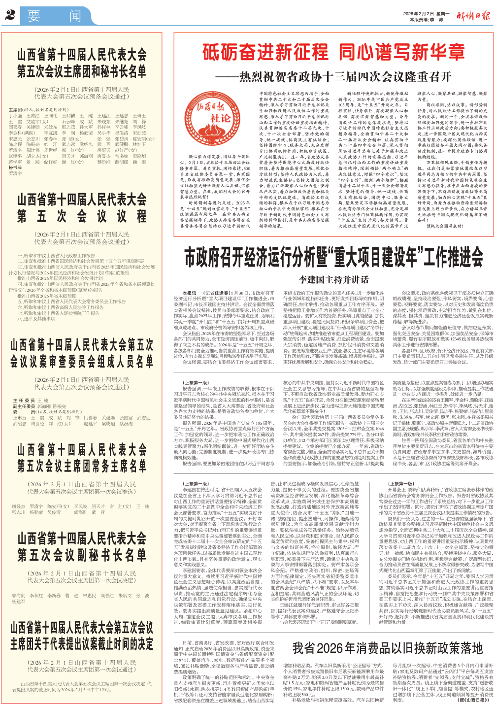 山西省第十四届人民代表大会第五次会议议程