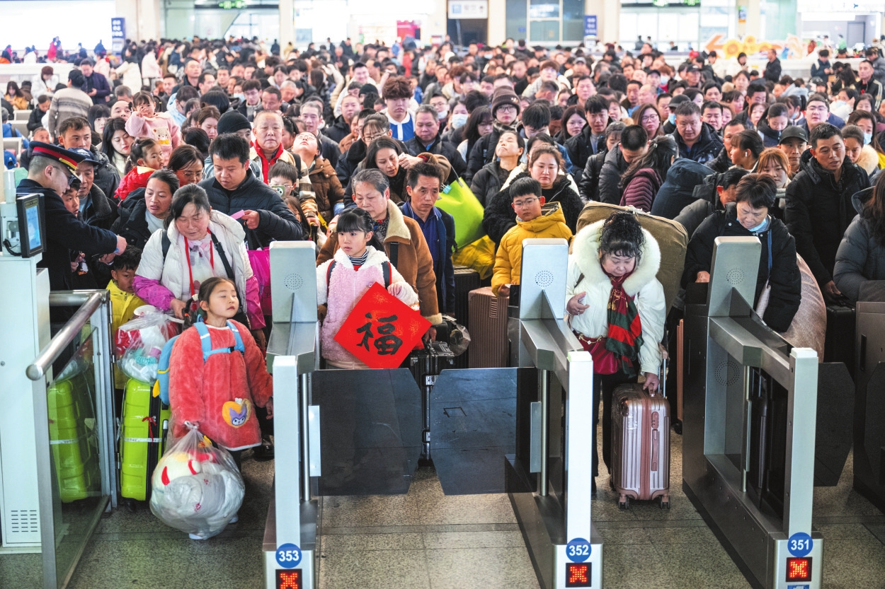 2月2日,在湖北省武汉市汉口火车站,旅客进站乘车。新华社记者肖艺九摄