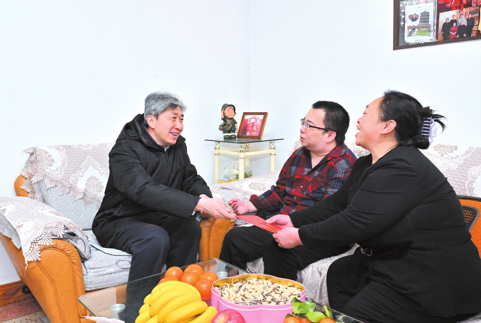 图为市委书记朱晓东走访慰问困难群众孙龙。本报记者冯晓磊摄