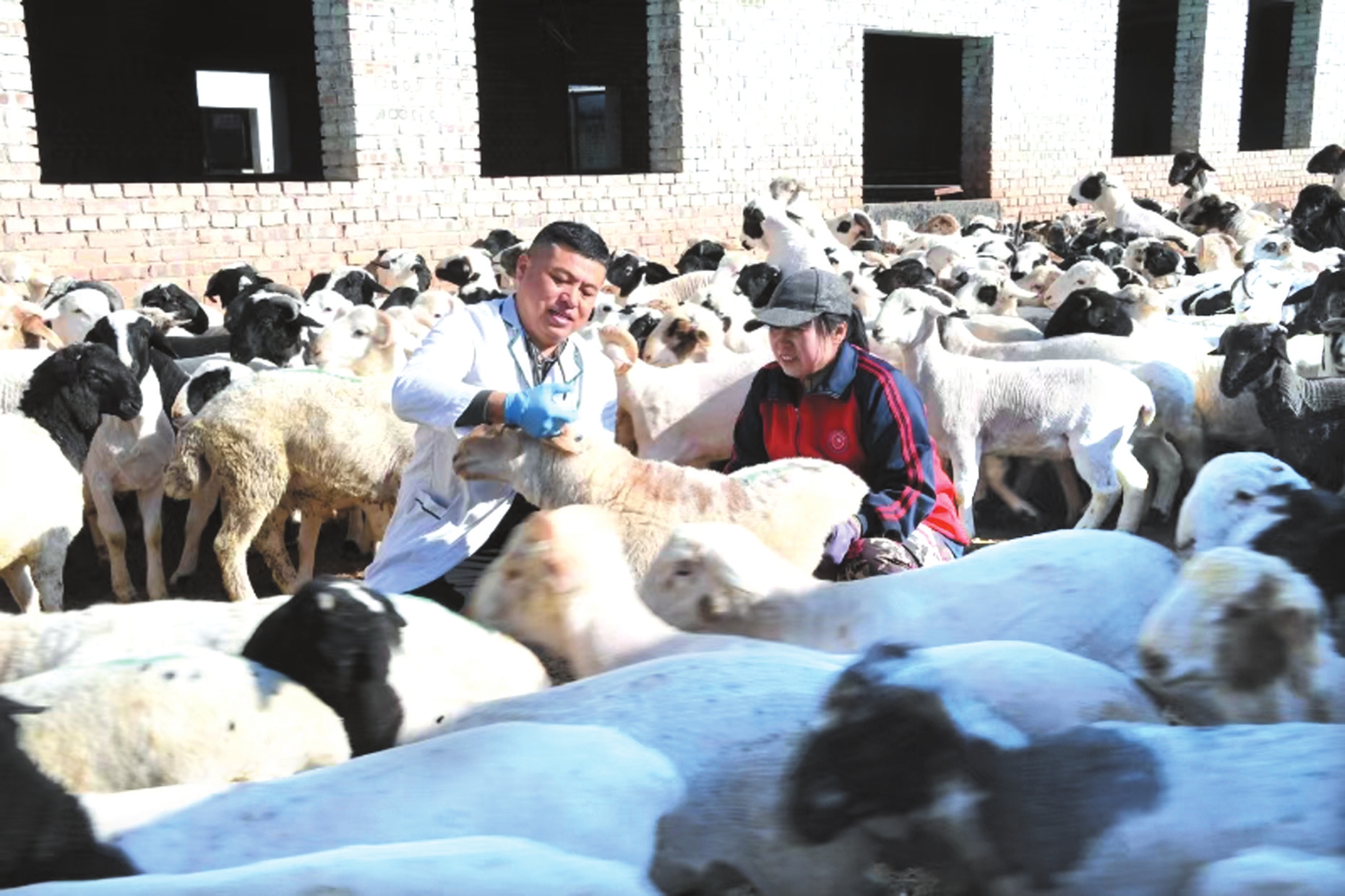 王兴春在原平市解村养殖场为肉羊诊疗。本报记者刘纪森摄