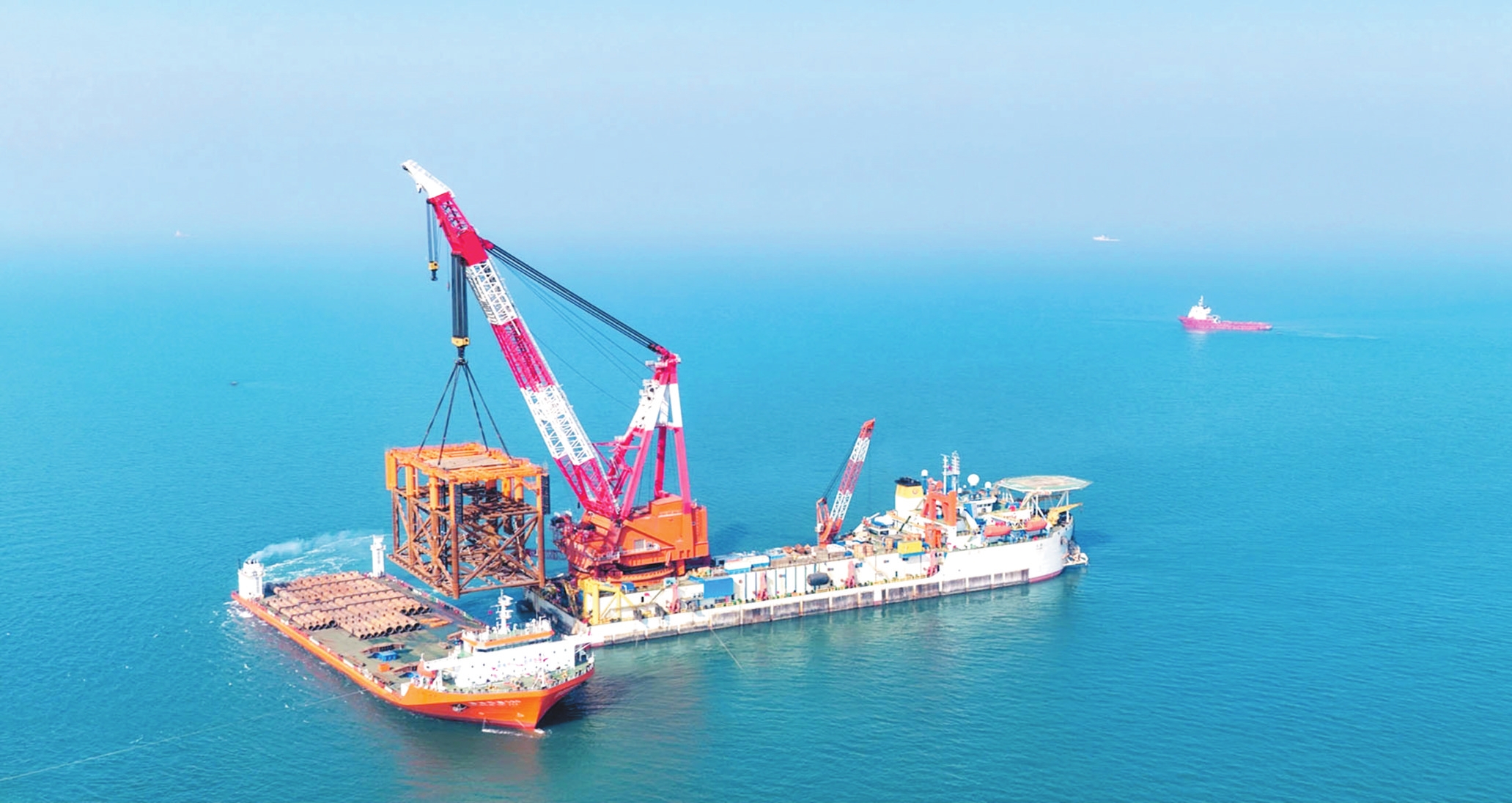 当日,渤中26-6油田开发项目(二期)全部导管架安装就位,标志着项目工程建设取得重要阶段性进展,为二期项目按期投产奠定坚实基础。