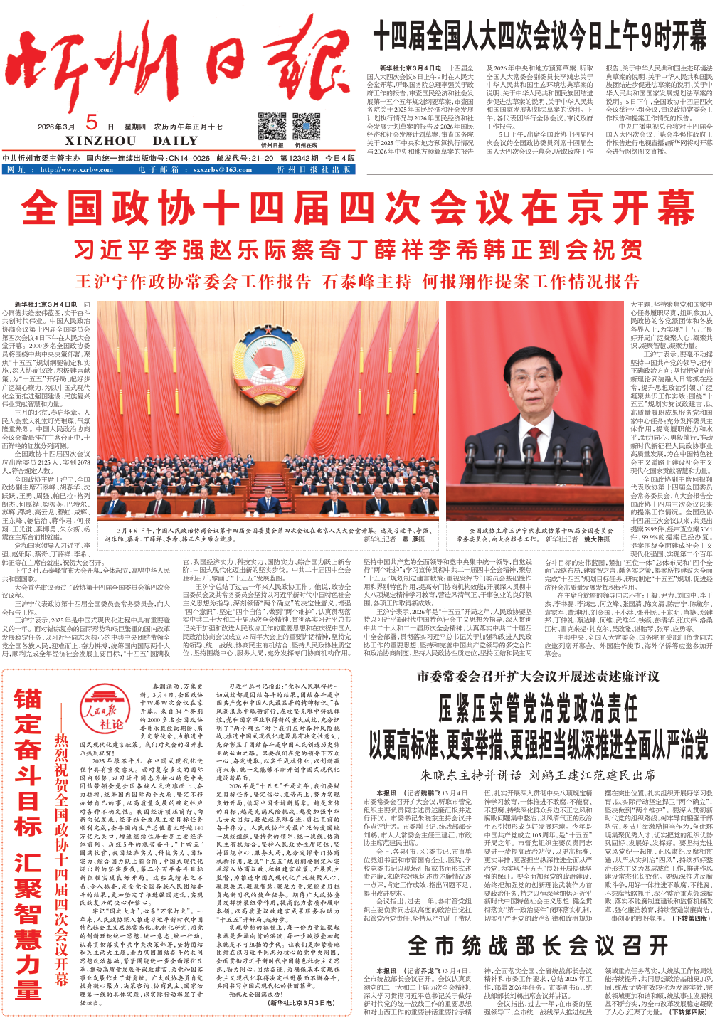 全国政协十四届四次会议在京开幕