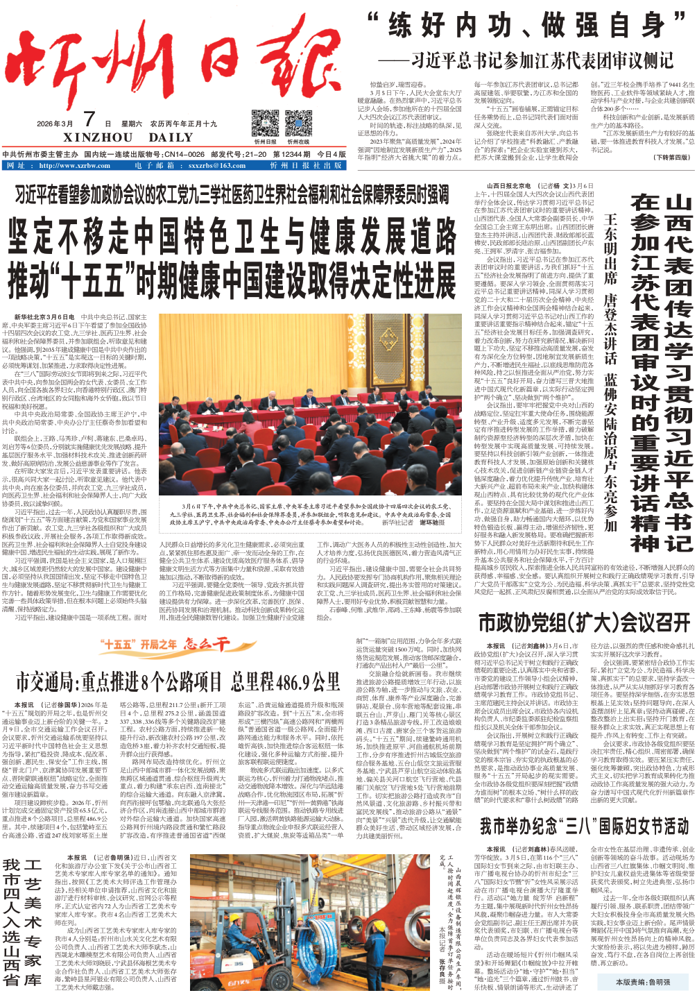 山西代表团传达学习贯彻习近平总书记在参加江苏代表团审议时的重要讲话精神