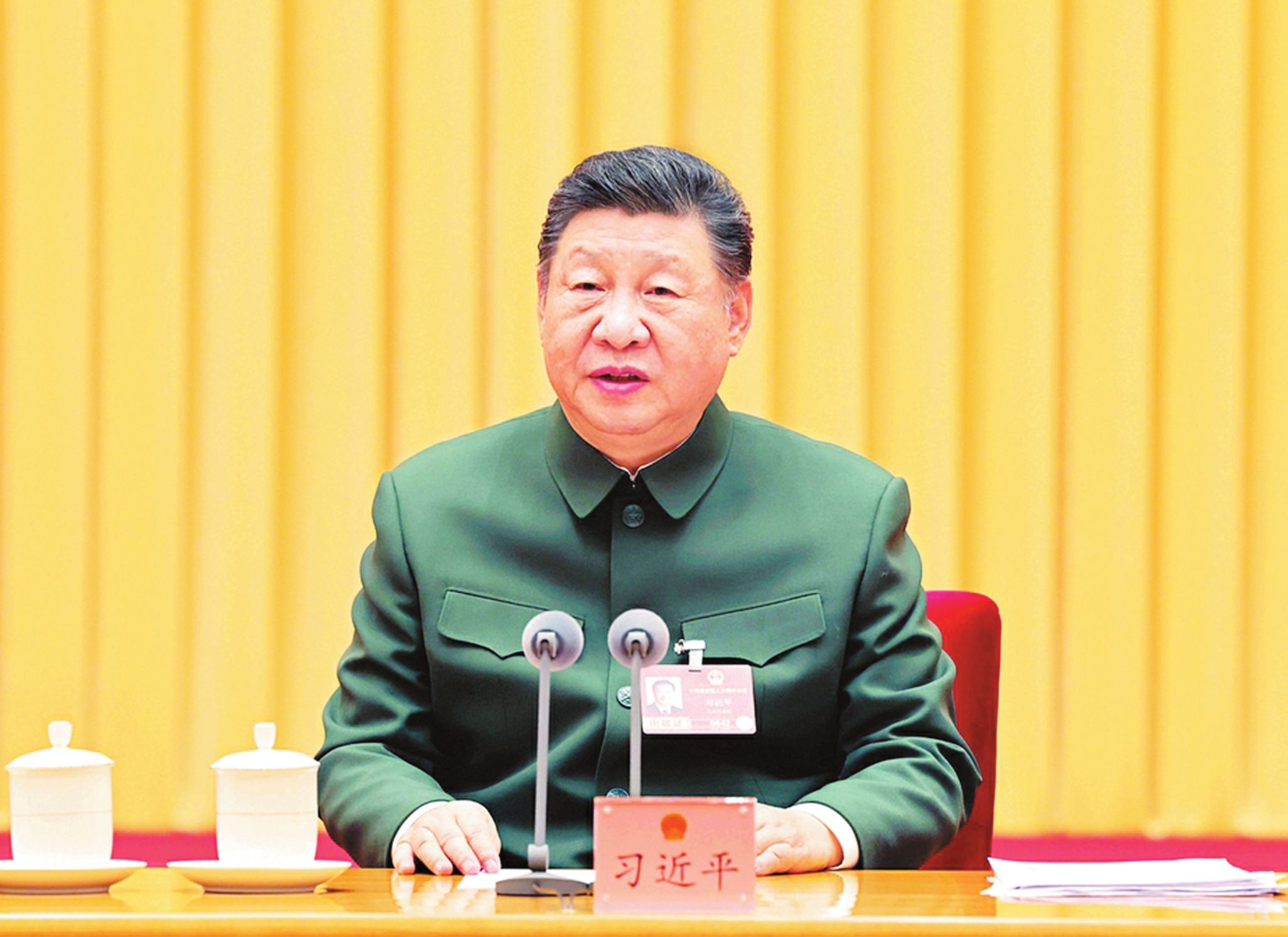 3月7日下午,中共中央总书记、国家主席、中央军委主席习近平出席十四届全国人大四次会议解放军和武警部队代表团全体会议并发表重要讲话。新华社记者 李刚摄