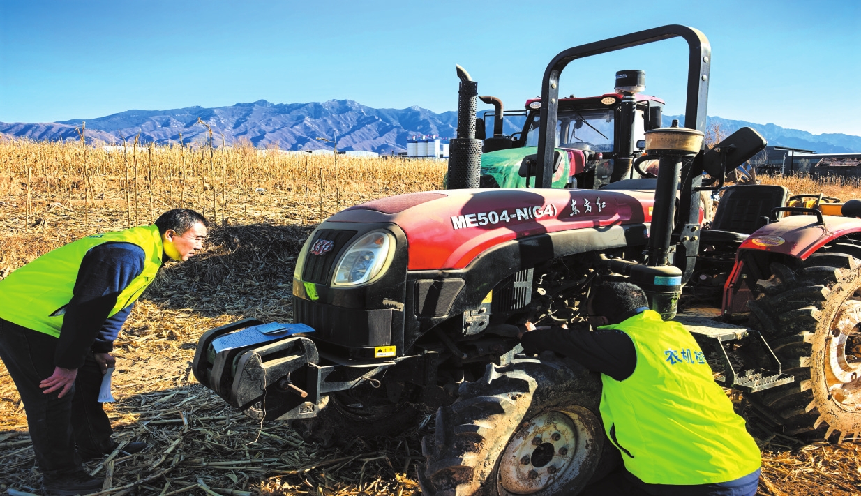 技术人员正对拖拉机进行全面“体检”。 郭婧蕾摄