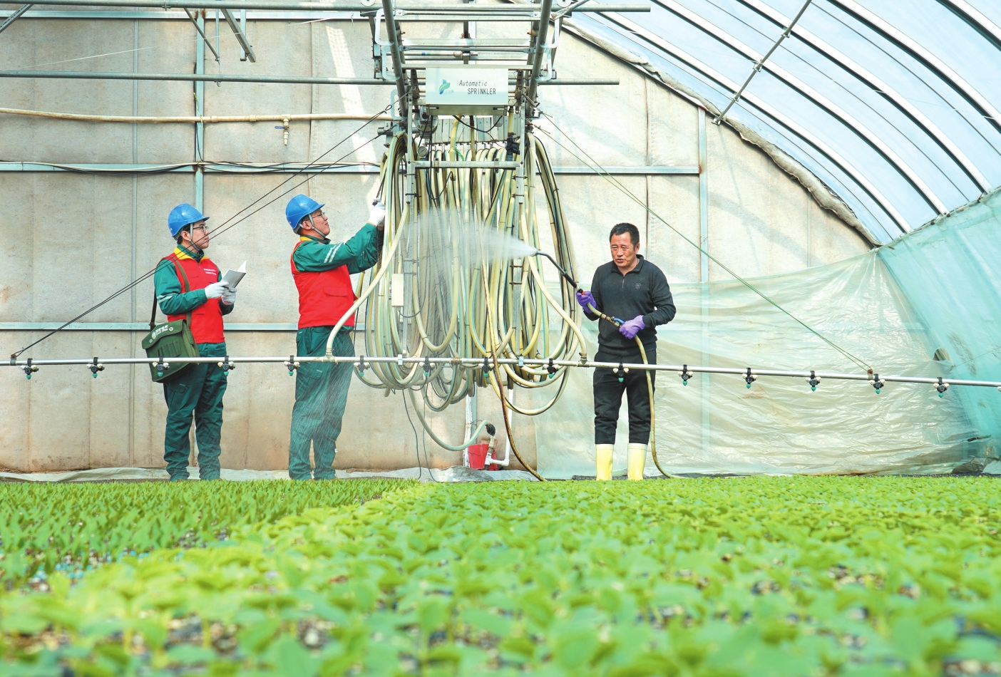 当前正值春耕关键时期,近日,国网忻府区供电公司太行黎明共产党员服务队队员,走进坛坛乡辣椒专业合作社育苗大棚开展电力“义诊”服务,重点检查大棚内的供电线路、控制设备及自动喷淋、地热加温系统运行状况,现场指导农户科学安全用电。通过精准的电力保障和贴心服务,为辣椒育苗提供稳定的温湿度环境,以实际行动助力春耕生产。