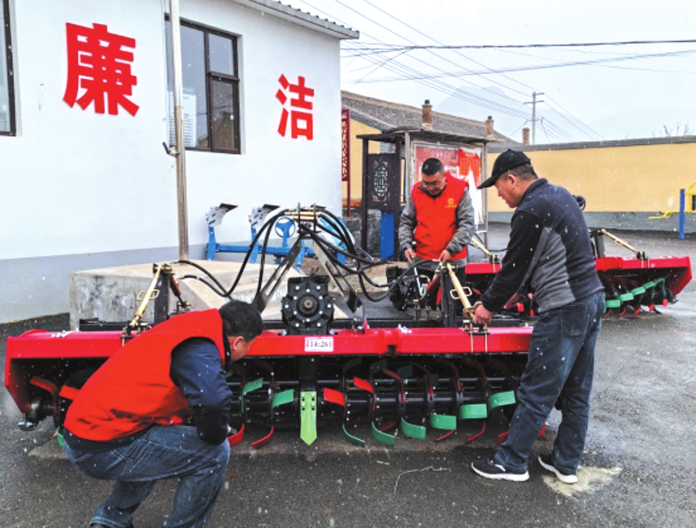工作队员与农机技师一起仔细检查旋耕机等设备的零部件、传动系统及液压装置,排查隐患,调试机械性能,确保农机以最佳状态投入春耕。队员们还向农户讲解农机日常保养知识,提升村民科学使用农机的能力。