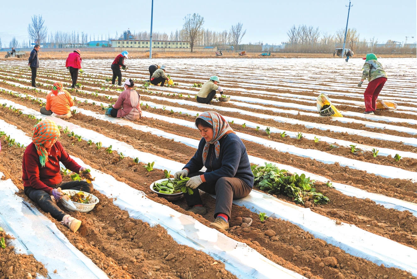 3月25日,在忻府区播明镇卢家窑村田地中,村民正抢抓农时种植油菜。近年来,卢家窑村大力发展蔬菜种植,全村油菜种植面积已达500亩。 本报记者 范 琛摄