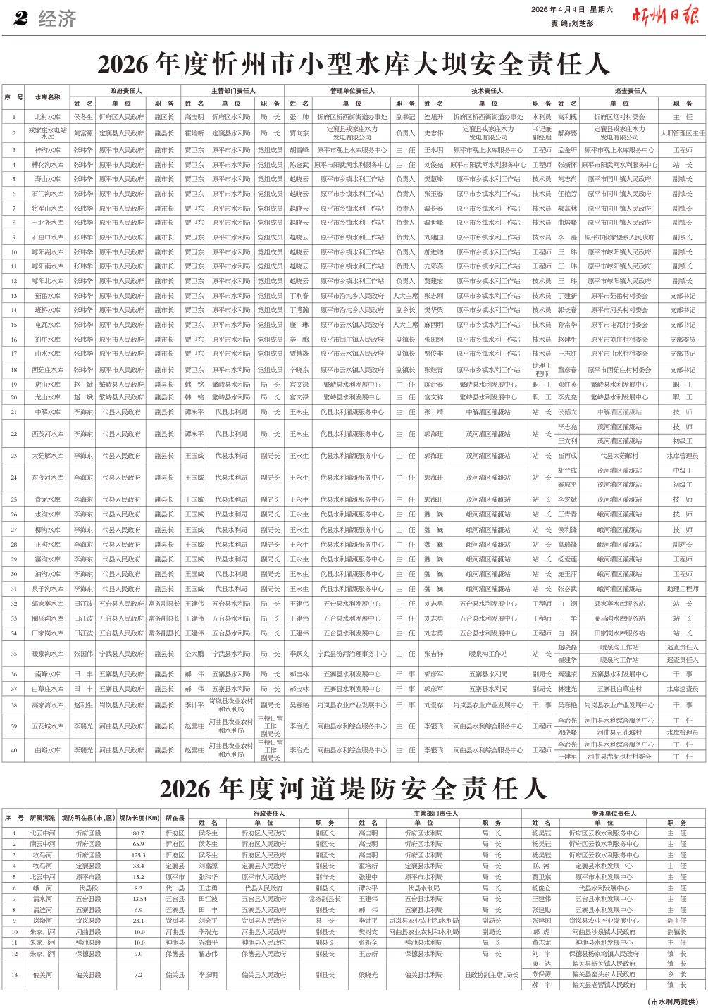 2026年度忻州市小型水库大坝安全责任人