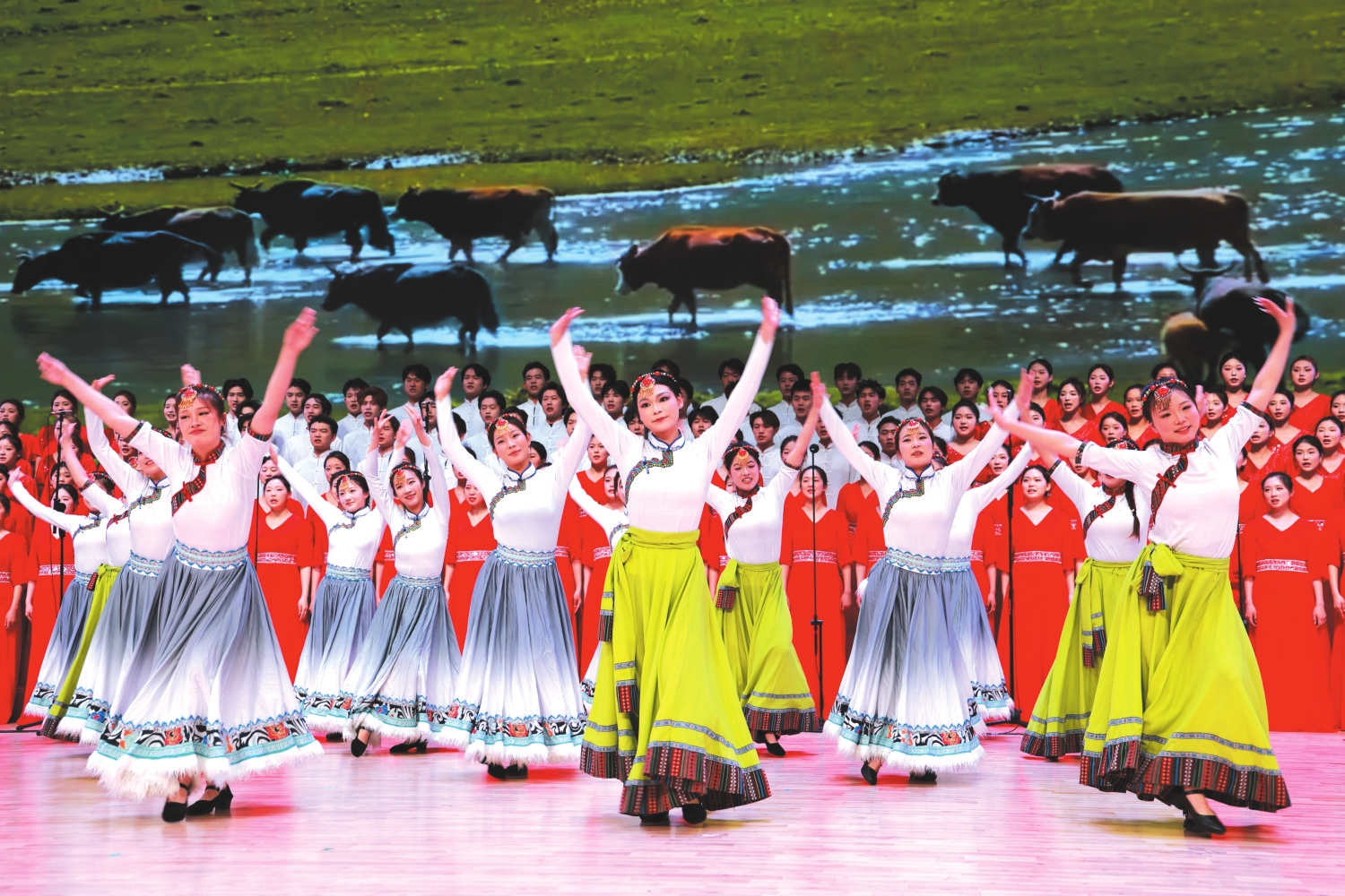 4月17日,忻州师范学院举行第十八届校园科技文化艺术节开幕式暨庆祝中国共产党成立105周年合唱比赛。 本报记者 张存良摄
