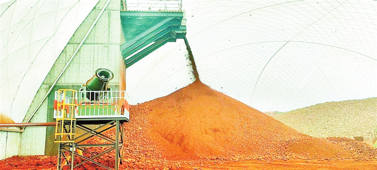 4月15日,4号气膜仓内正在进行自动化矿石倒运作业,同步开启雾炮机降尘。 高舒军摄