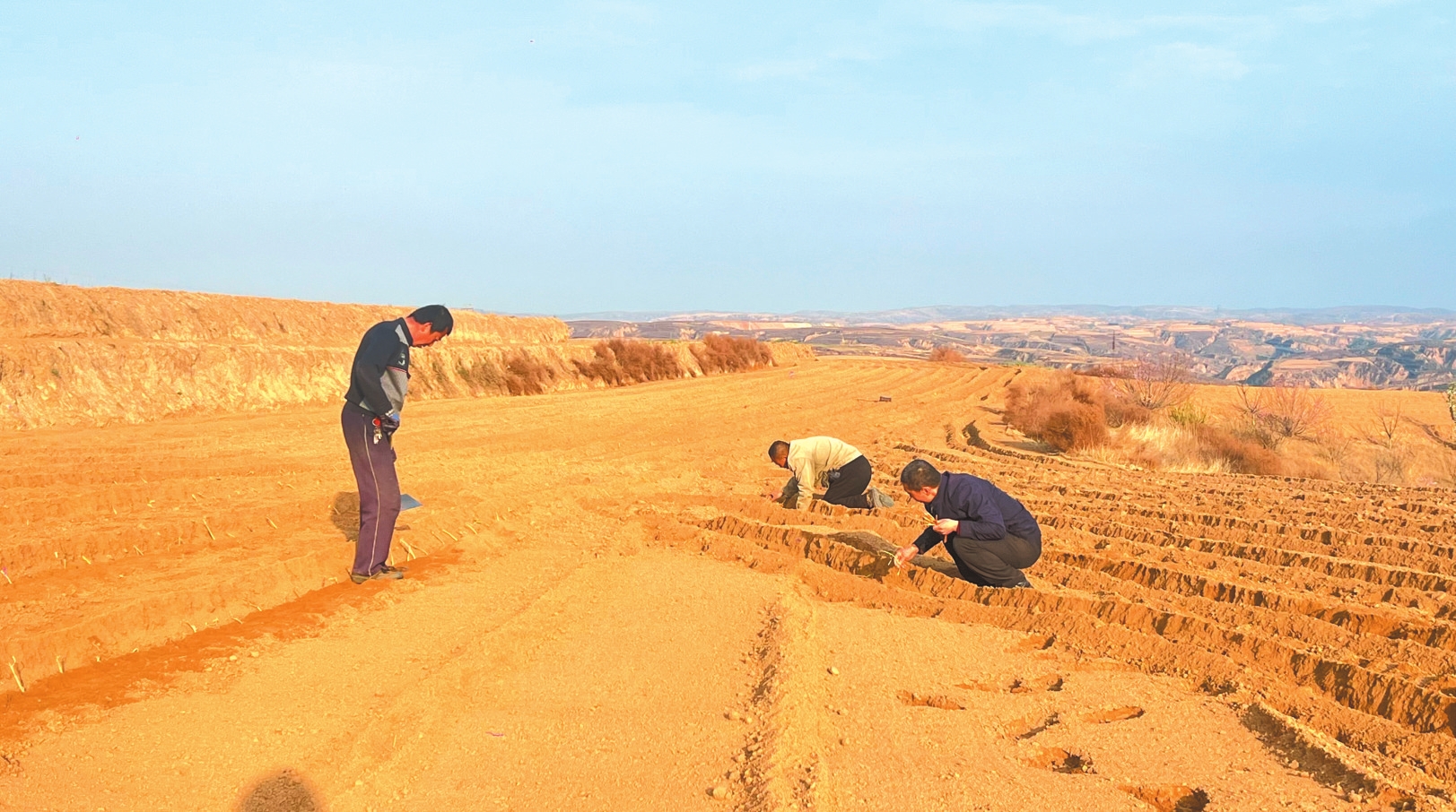 村民正在播撒葱籽。