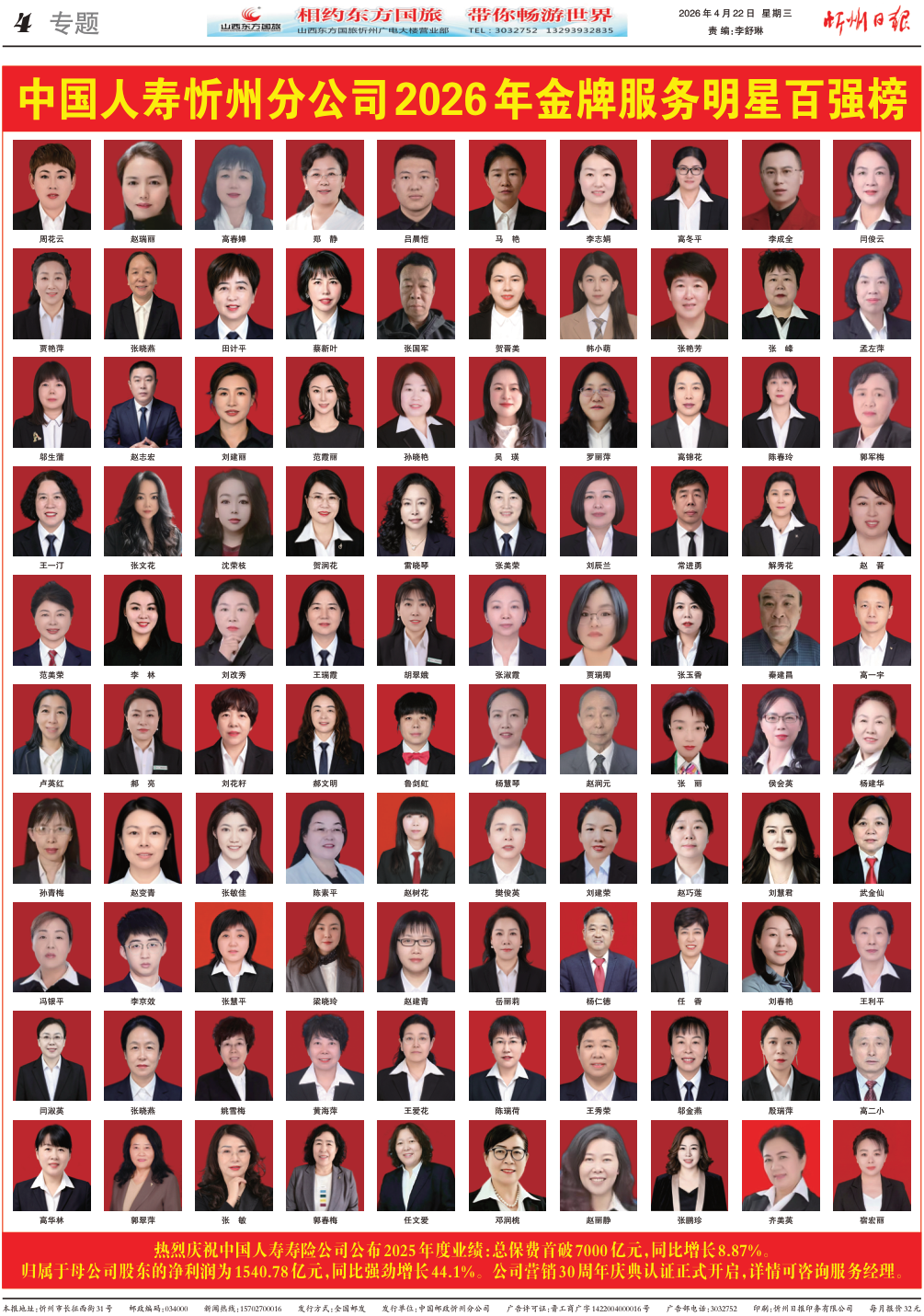 中国人寿忻州分公司2026年金牌服务明星百强榜