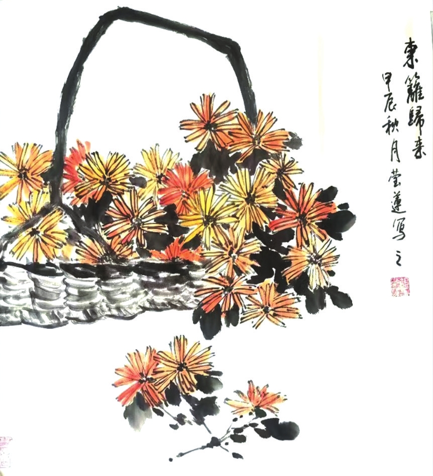 传统花鸟素有“托物言志”之脉,从明代大写意花鸟画代表徐渭以“墨葡萄”寄寓郁愤,到近现代花鸟画大家齐白石以“虾蟹”抒发闲情,题材历来是画家心绪的直观映照。胡莹莲以吉祥意象入画,实则是将传统花鸟美学与当代人的情感需求深度联结,让“气韵”从纸墨氤氲间走出,自然融入当代生活现场。