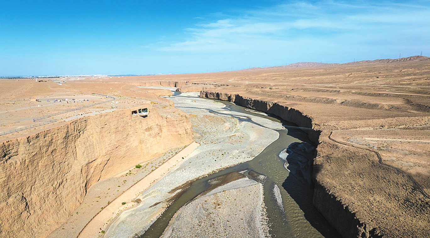 墩体与讨赖河峡谷全貌,可见加固后的遗存结构