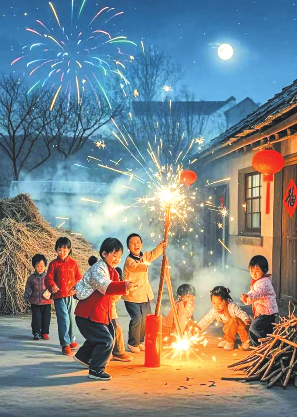 腊月三十除夕,是一年最忙碌也最热闹的日子。扫院除尘、贴春联年画、备团圆饭,桩桩皆是年俗。贴完春联年画,父亲便着手垒旺火,此刻垒旺火是一家人的头等大事。