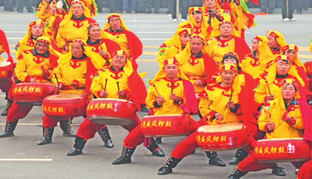 正缘于这扬威提神的魅力,威风锣鼓才能成为一张文化名片、一个文化品牌;才能走出家乡,扬帆远航,遍及神州。数不清有多少教练在长城内外传播鼓艺,数不清有多少团队在大江南北敲打展演。这些教练,这些演员,多是走出庄稼地的农人,有的来自汾河谷地,有的来自偏远山庄。祖祖辈辈躬耕田地的庄稼汉,做梦也没有想到这喜庆的锣鼓,会成为脱贫致富奔小康的道路。他们喜出望外地走出家门,去敲锣打鼓,去欢悦万家,去激扬神威,去招财进宝。