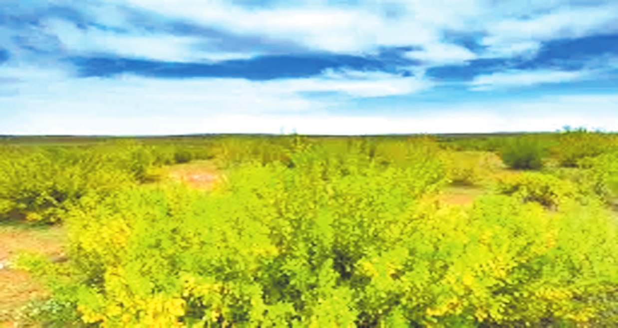 那花开得泼辣,不矜持,一串串,一簇簇,挤满了带刺的枝条。当微风拂过,簇簇柠条随风摇曳,金黄的花在灰绿的枝条上起伏,远看,仿佛给连绵的沙丘披上了巨大的、金线织就的毯子。风里那清涩的苦香,也变得浓郁、甘甜起来。它引来了蜜蜂,嗡嗡嘤嘤,像给这寂静的土地配上了欢快的弦乐;操着南腔北调口音的养蜂人将蜂箱安置在柠条丛中;也引回了久违的鸟雀,野鸡、狐狸、獾,这些记忆中几乎绝迹的生灵,又悄悄回到了柠条林的深处。