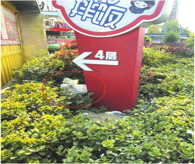 新建路田森汇绿化带垃圾散落