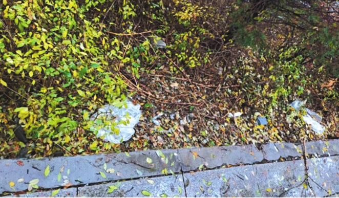 建设路万福家园小区西侧绿化带垃圾较多