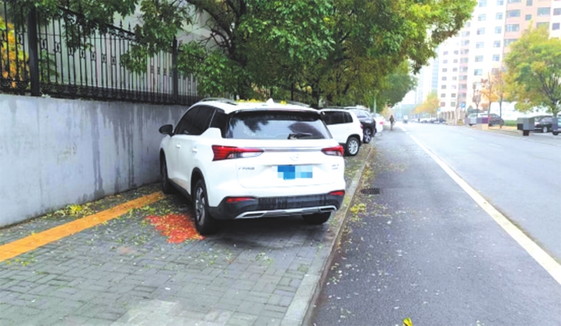 福慧路惠民小区西侧车辆占用人行通道