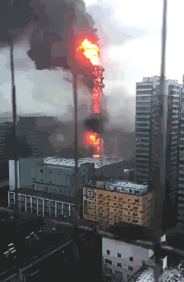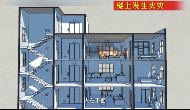 高层建筑起火后,高温烟气会通过楼梯间、管道井等垂直通道迅速向上蔓延,速度极快,将整个建筑物迅速引燃。