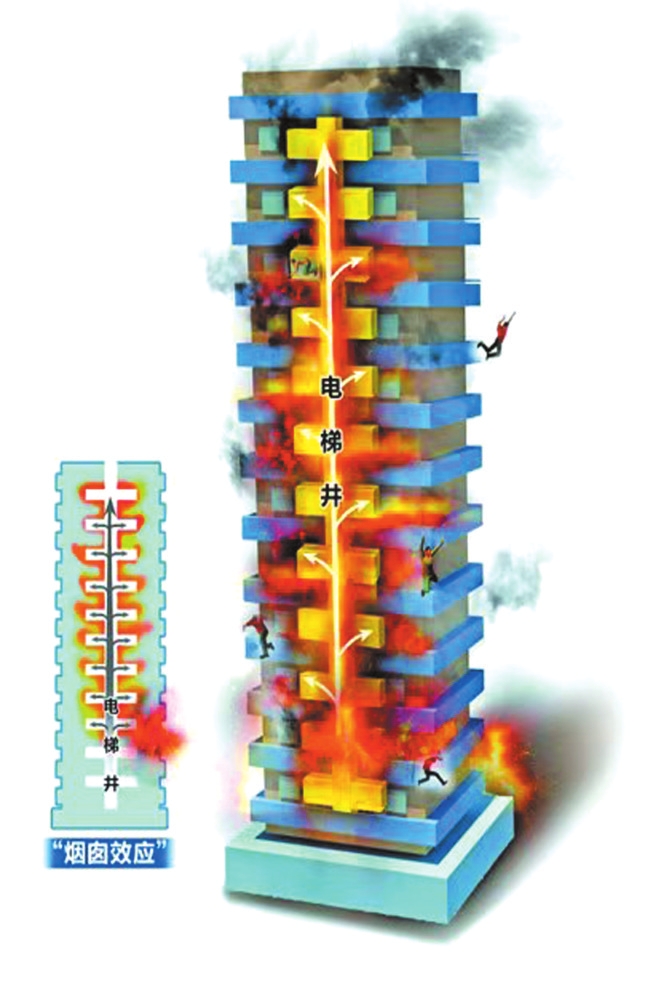 高层建筑内部管道竖井多,室内可燃物、杂物也多,火灾风险大。一旦起火,这两个关键因素会导致火势急剧扩大: