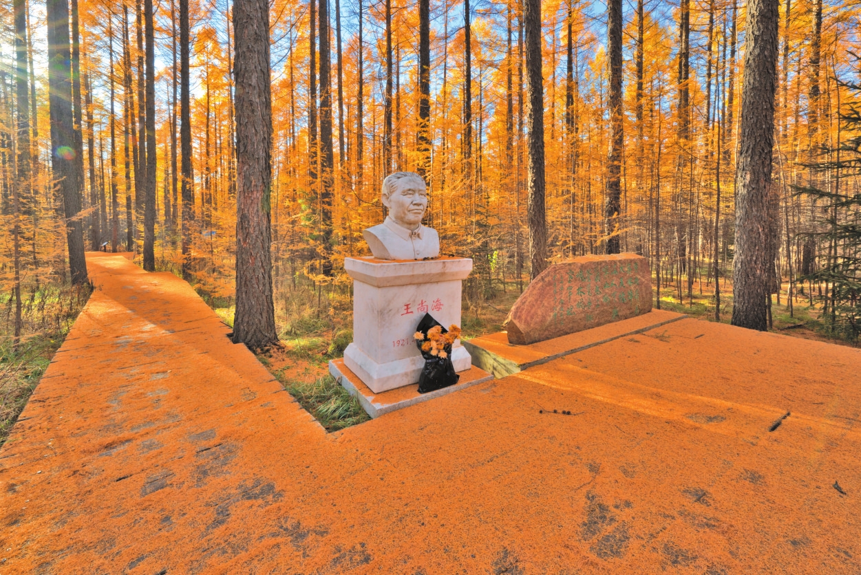 1991年,为纪念王尚海等老一代创业元勋的功绩,林场将这片森林命名为“王尚海纪念林”。这里长眠着这位塞罕坝的奠基者——遵照他的遗愿,他的骨灰被撒在了马蹄坑,伴他长眠的那片松林也因此得名。