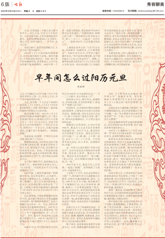 早年间怎么过阳历元旦