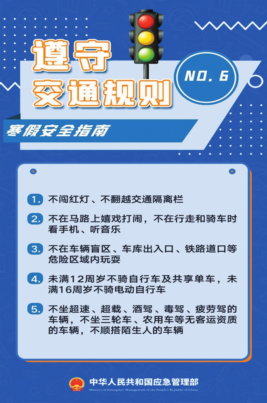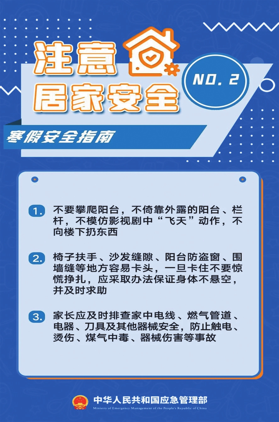每年寒假,是青少年事故的高发期。为让孩子们快乐平安地度过寒假,这8方面安全提示请牢记!
